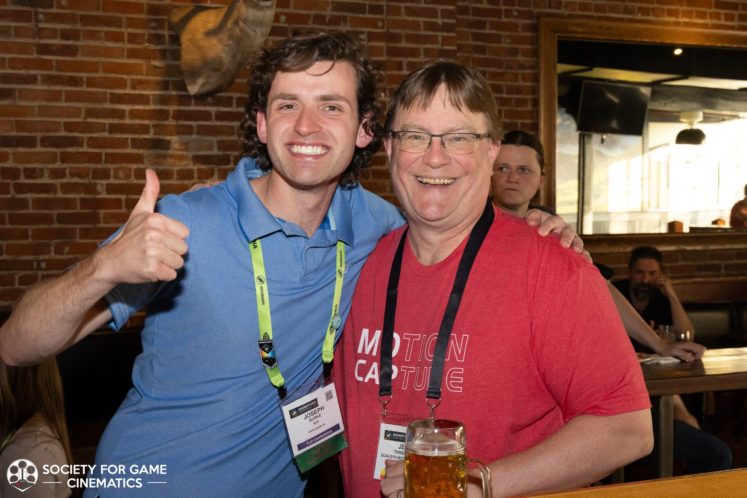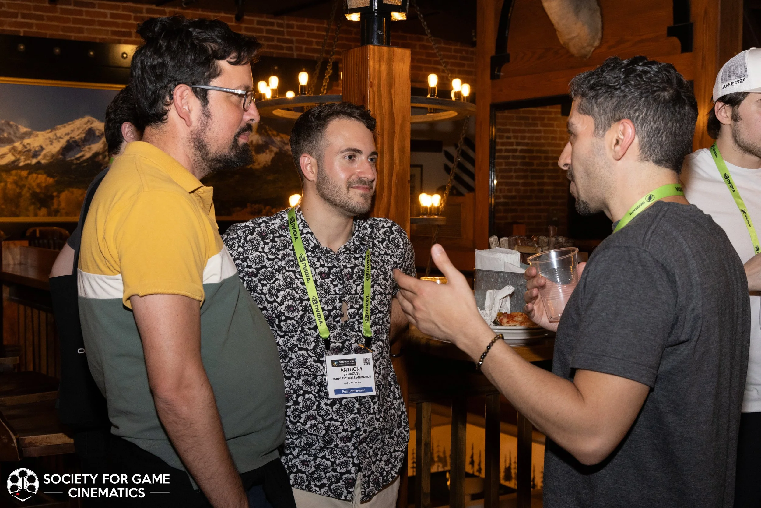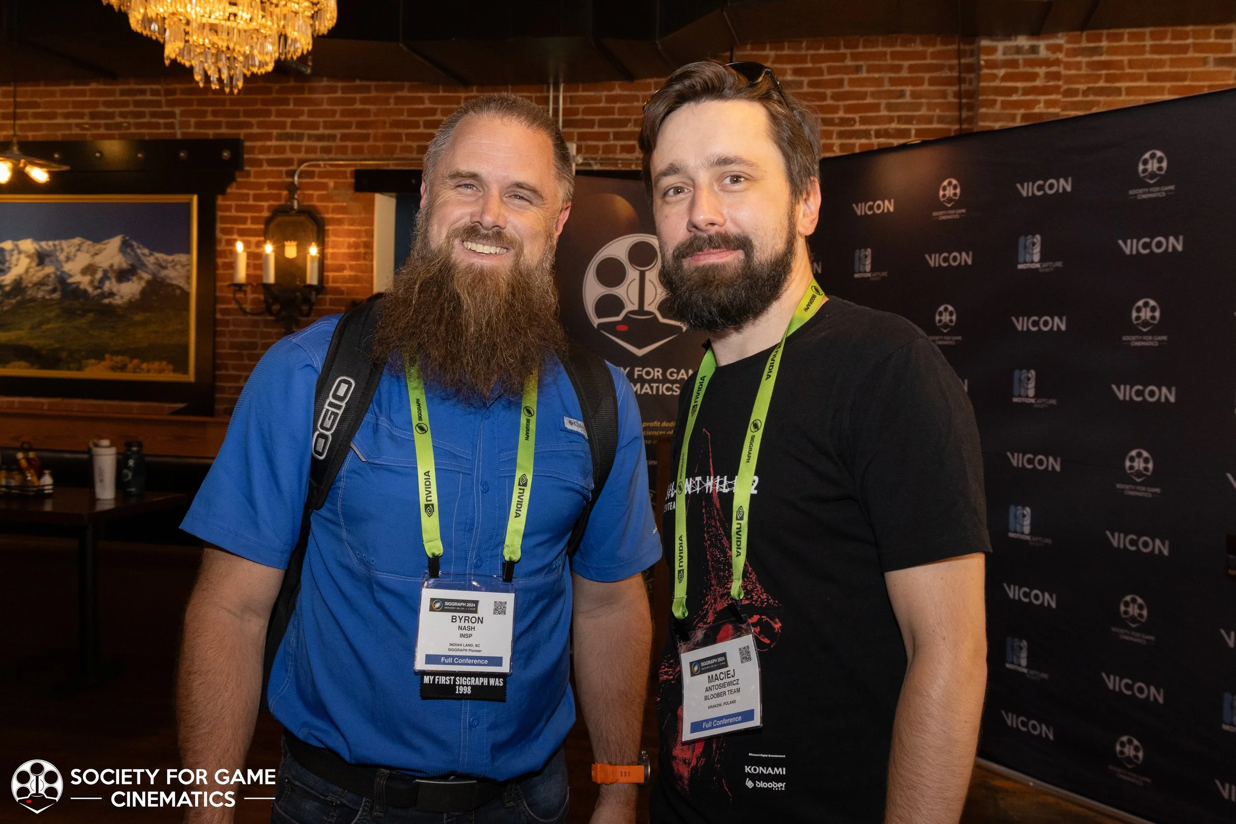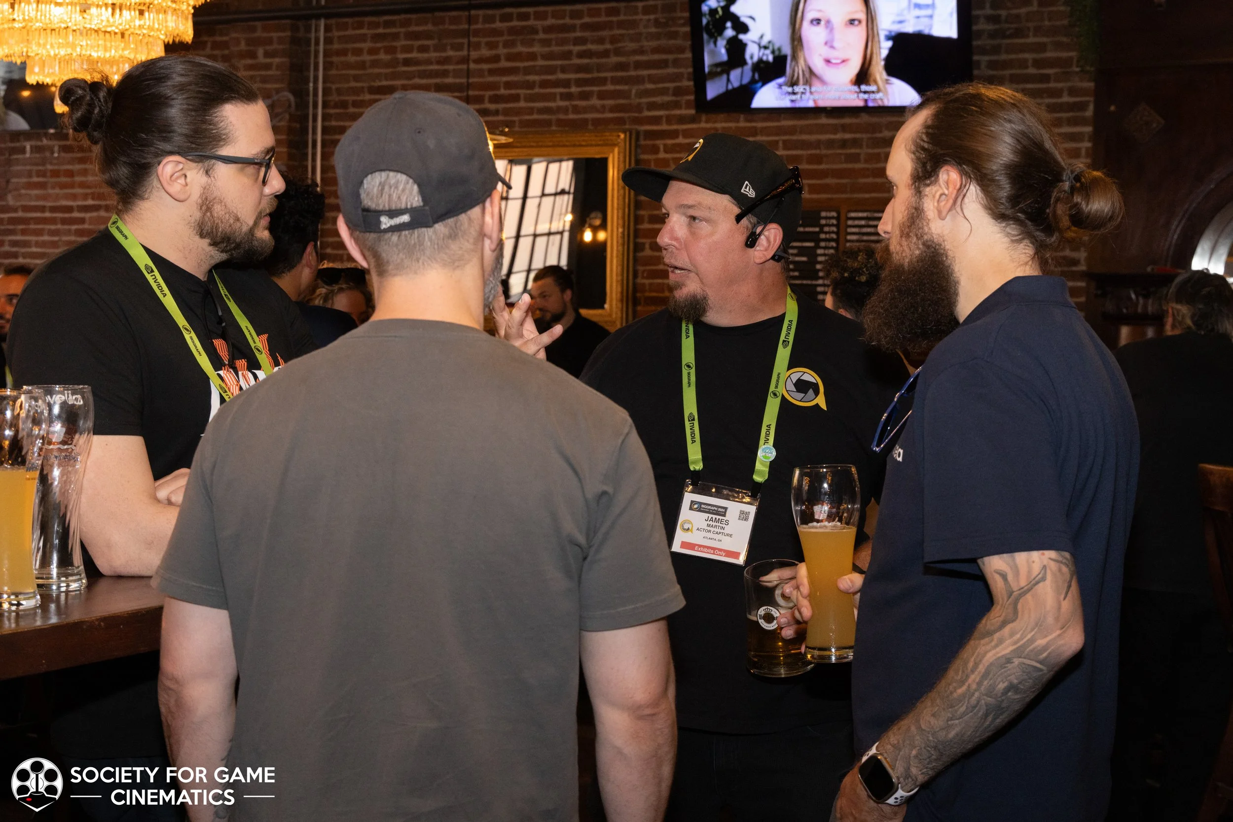 On July 31, 2024, the Society for Game Cinematics hosted back-to-back events at SIGGRAPH 2024 in Denver, Colorado: First, a round-table discussion-style “Birds of a Feather” talk entitled “What IS a Cinematic?!” followed by a mixer co-hosted with the MoCap Society, made possible by the partnership and sponsorship support from Vicon and Rouge MoCap.