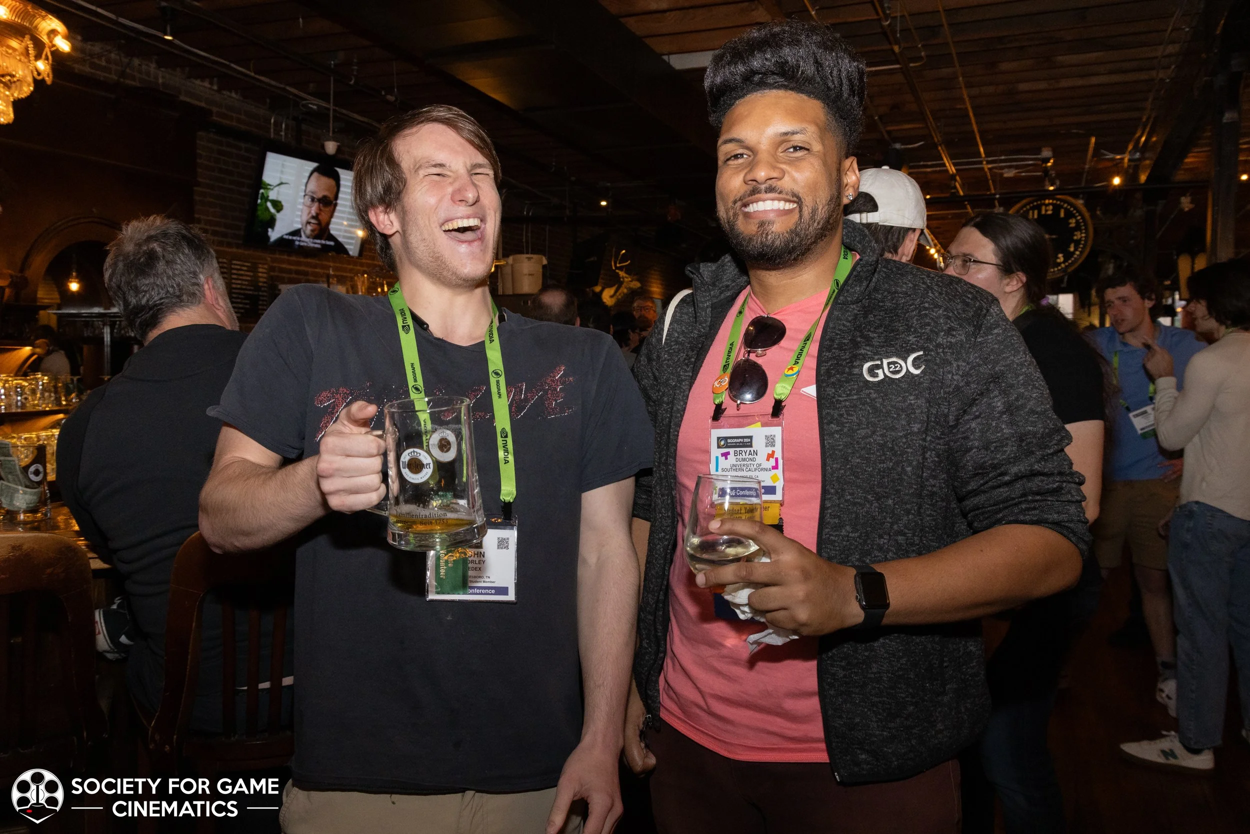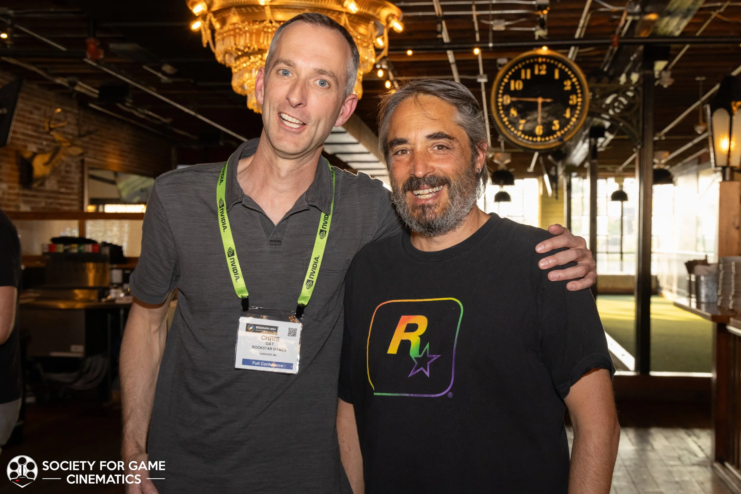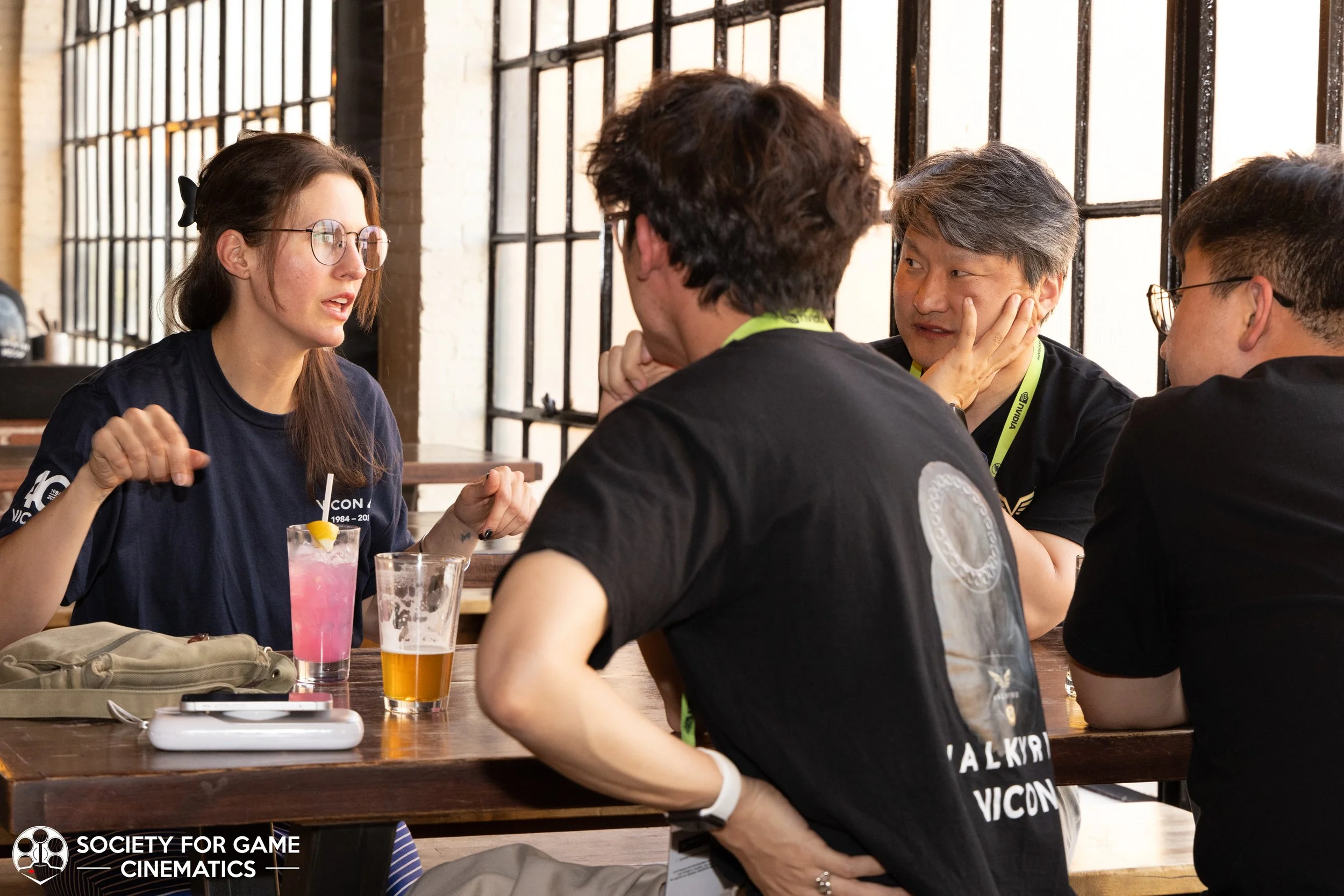 On July 31, 2024, the Society for Game Cinematics hosted back-to-back events at SIGGRAPH 2024 in Denver, Colorado: First, a round-table discussion-style “Birds of a Feather” talk entitled “What IS a Cinematic?!” followed by a mixer co-hosted with the MoCap Society, made possible by the partnership and sponsorship support from Vicon and Rouge MoCap.