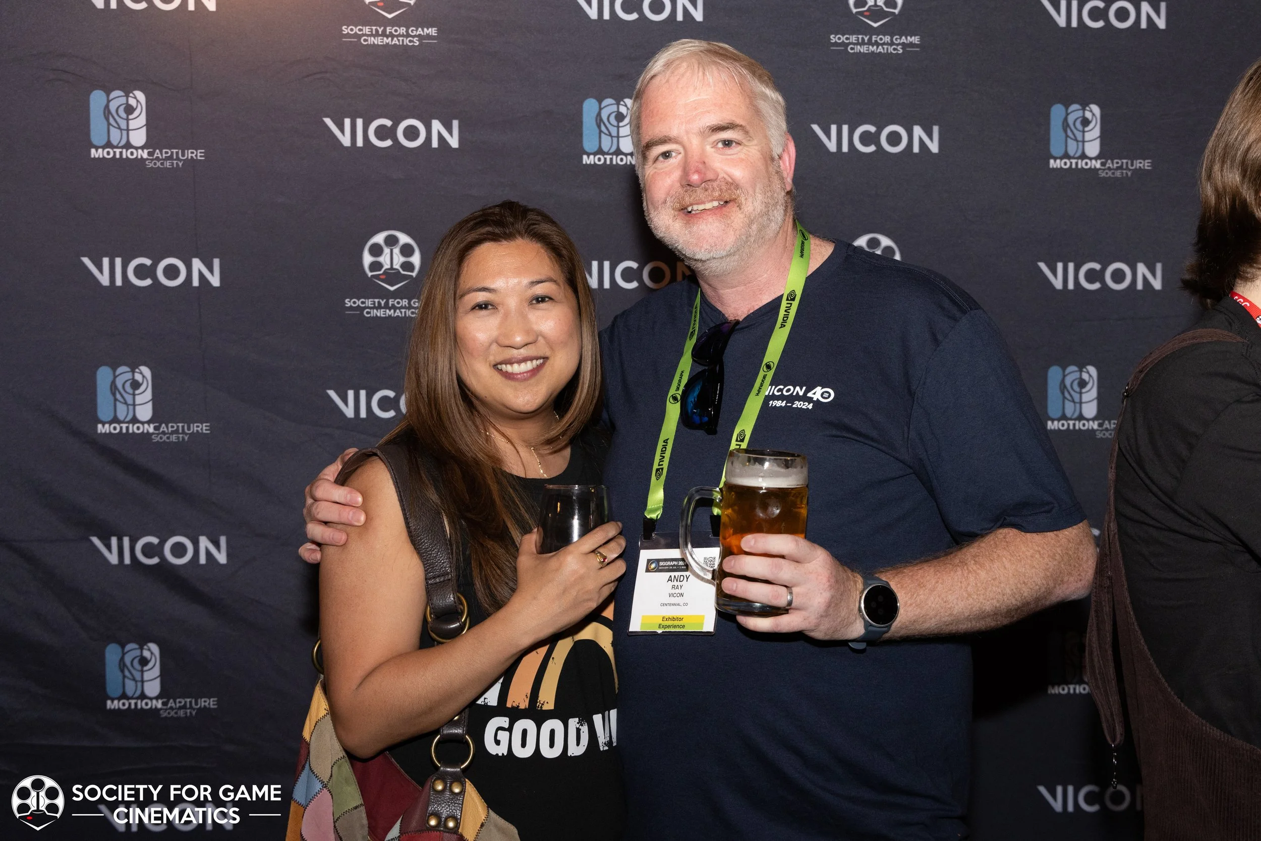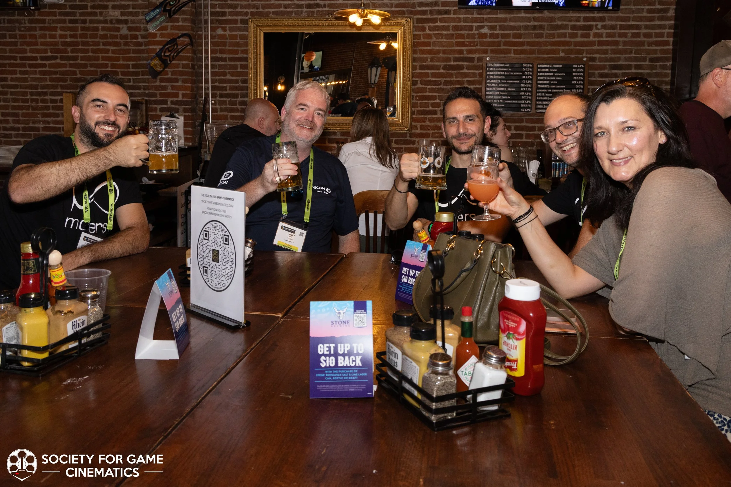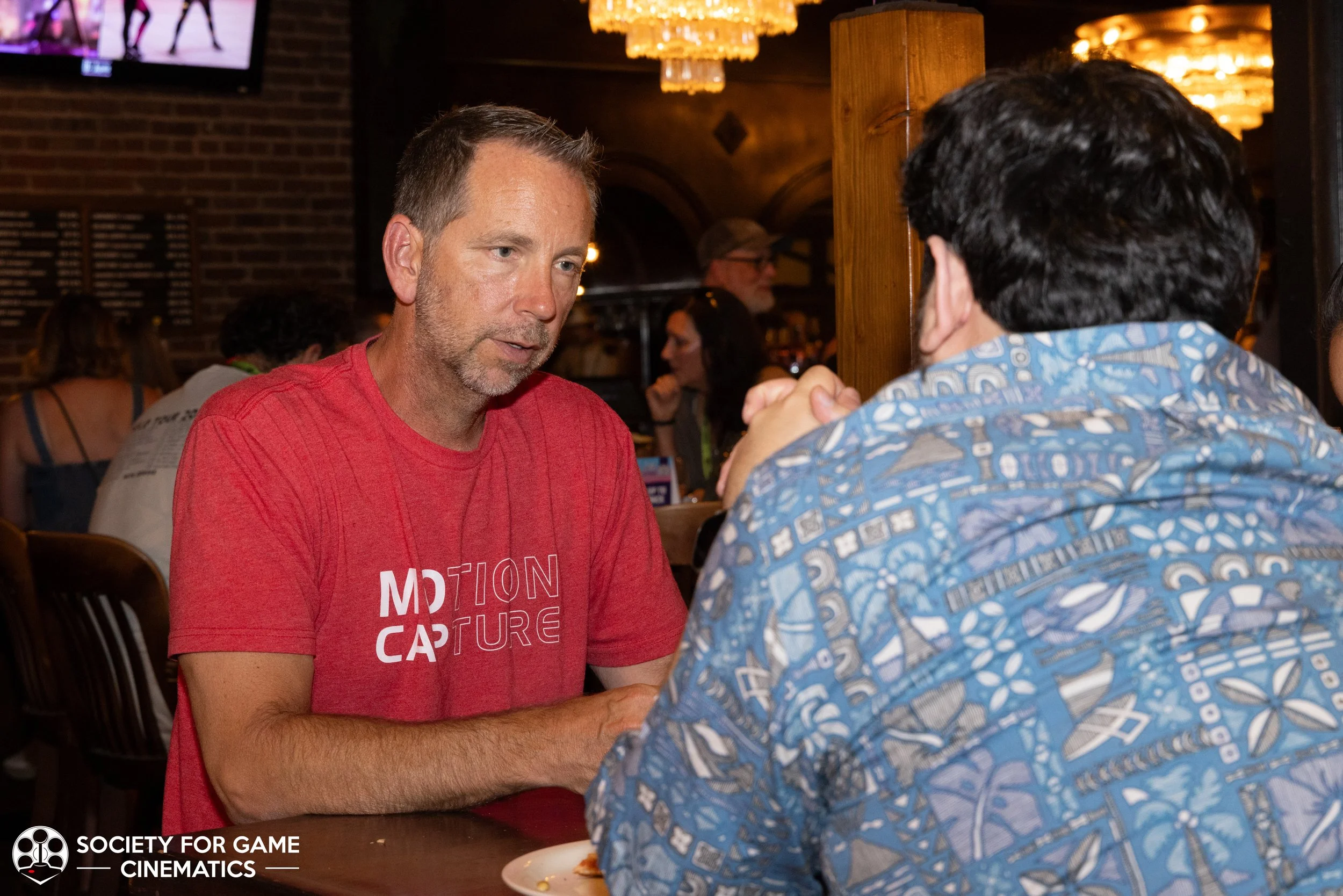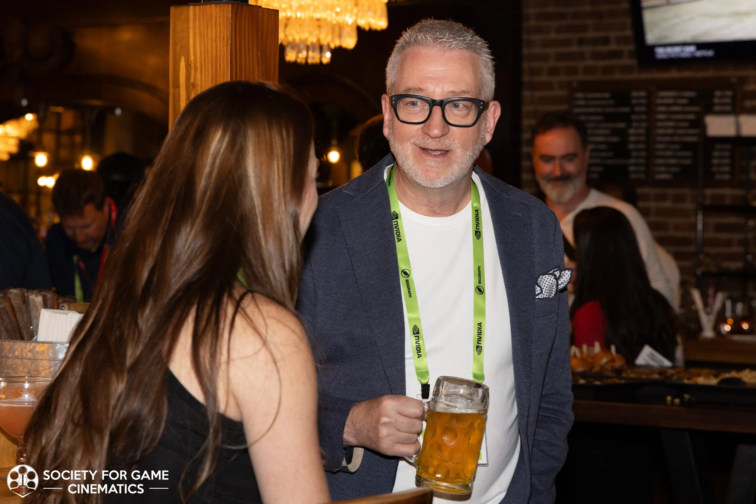 On July 31, 2024, the Society for Game Cinematics hosted back-to-back events at SIGGRAPH 2024 in Denver, Colorado: First, a round-table discussion-style “Birds of a Feather” talk entitled “What IS a Cinematic?!” followed by a mixer co-hosted with the MoCap Society, made possible by the partnership and sponsorship support from Vicon and Rouge MoCap.
